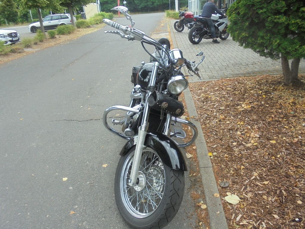 Gut erhaltene Honda VT 1100 aus 1. Hand mit aktuelem TÜV, Sportauspuff, Fehling Lenker(ABE), Seiten-Ledertaschen, Sissybar und Motorschutzbügel.