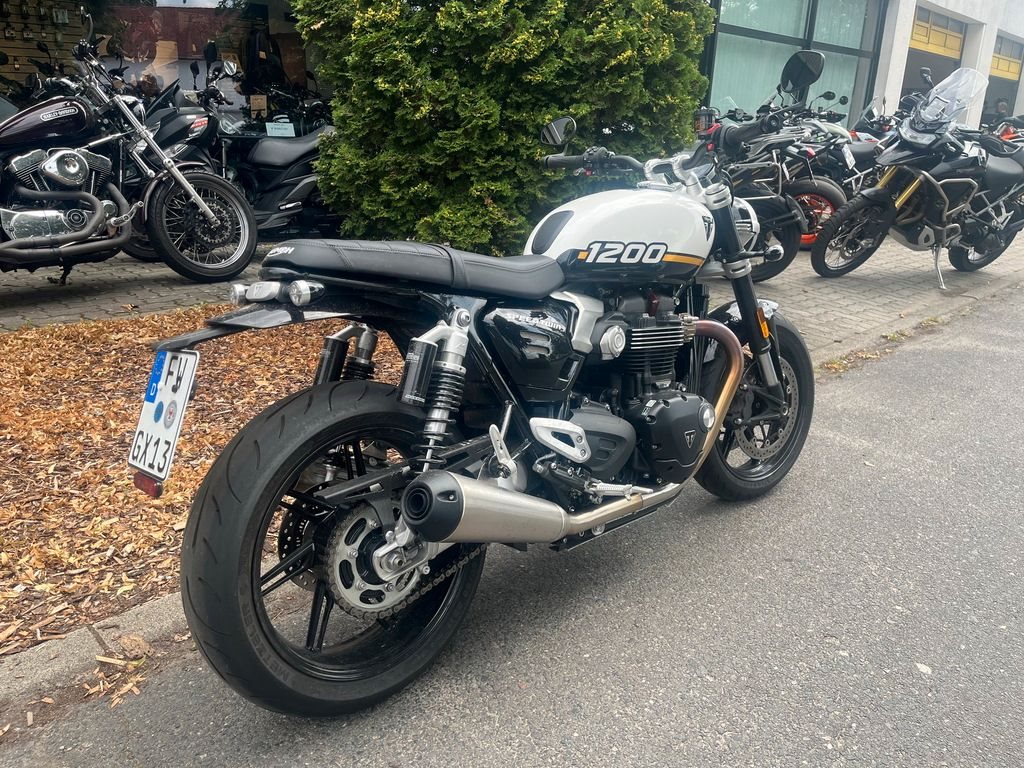 Mit den neuen Speed Twin 1200-Modellen bietet Triumph zwei außergewöhnliche Maschinen, die Retro-Optik und moderne Technik ansprechend kombinieren. Der potente 1200er Paralleltwin trifft nun auf State-of-the-Art Elektronik.und verwöhnt mit einem herrlichen Sound. Die Standard-Speed Twin überzeugt mit einer entspannten Ergonomie. Der breite, höher positionierte Lenker und die niedrigeren Fußrasten sorgen für eine aufrechte Sitzhaltung. Auf der Standardvariante sind alltagstaugliche Fahrwerks- und Bremskomponenten verbaut, die in den meisten Situationen vollkommen ausreichen.
